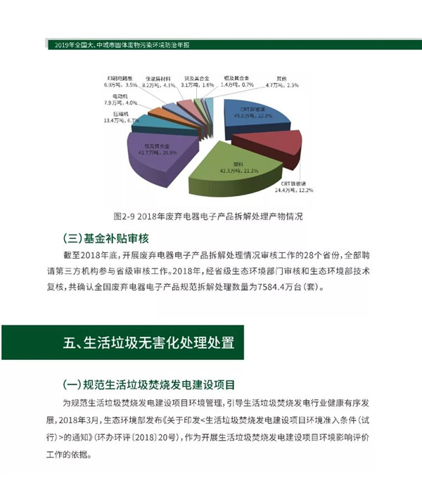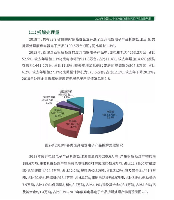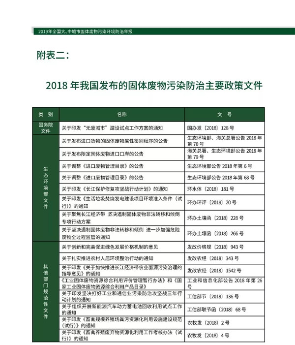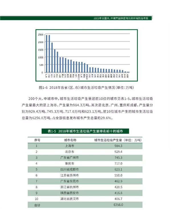 2018年,200個大、中城市生活垃圾產生量21147.3萬噸,處置量21028.9萬噸,處置率達99.4%。