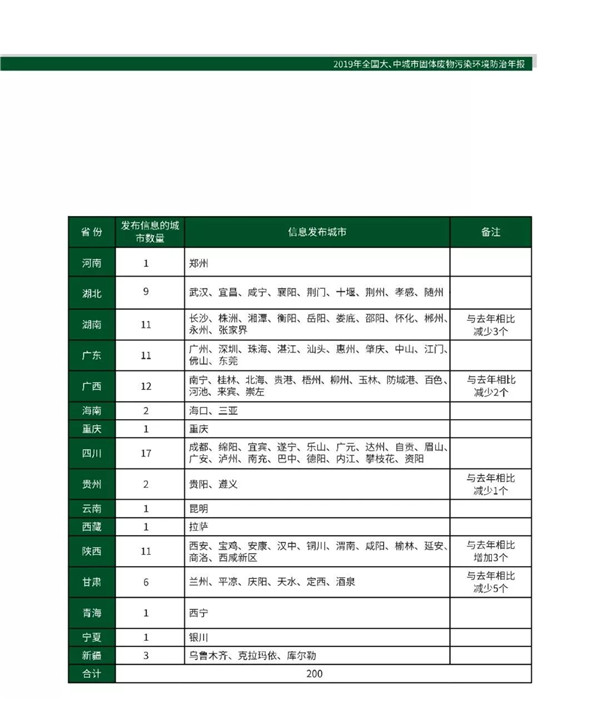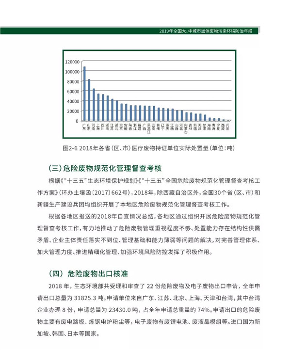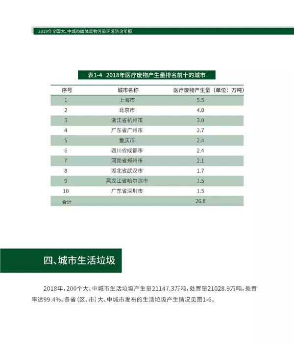2018年,200個大、中城市醫療廢物產生量81.7萬噸,處置量81.6萬噸,大部分城市的醫療廢物都得到了及時妥善處置。